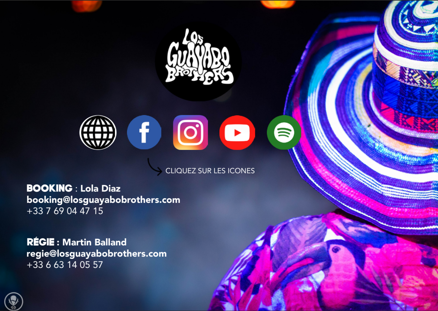Booking : Lola Diaz +33 (0) 7 69 04 47 15 booking@losguayabobrothers.com